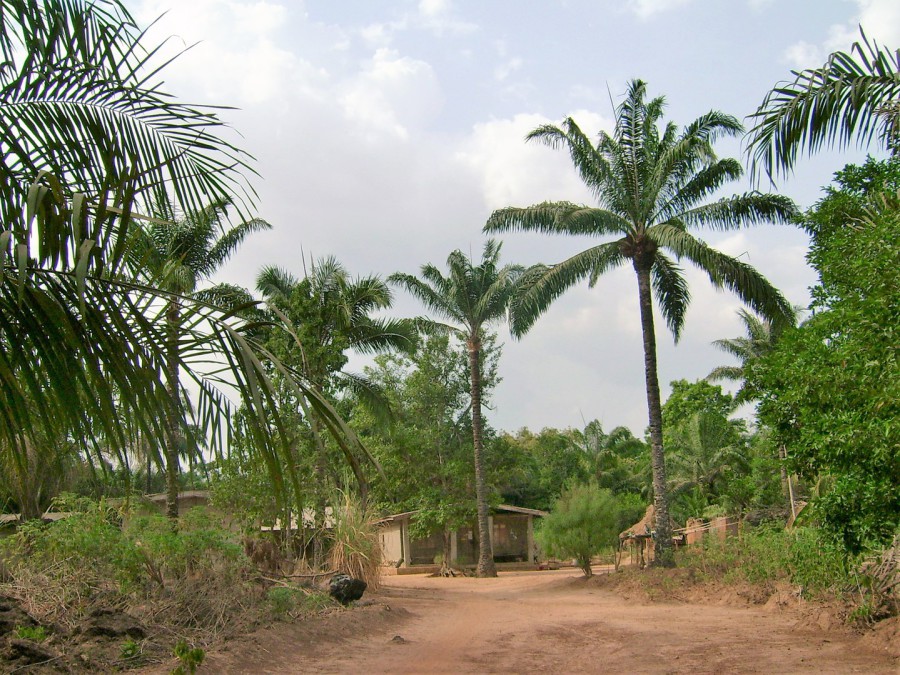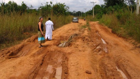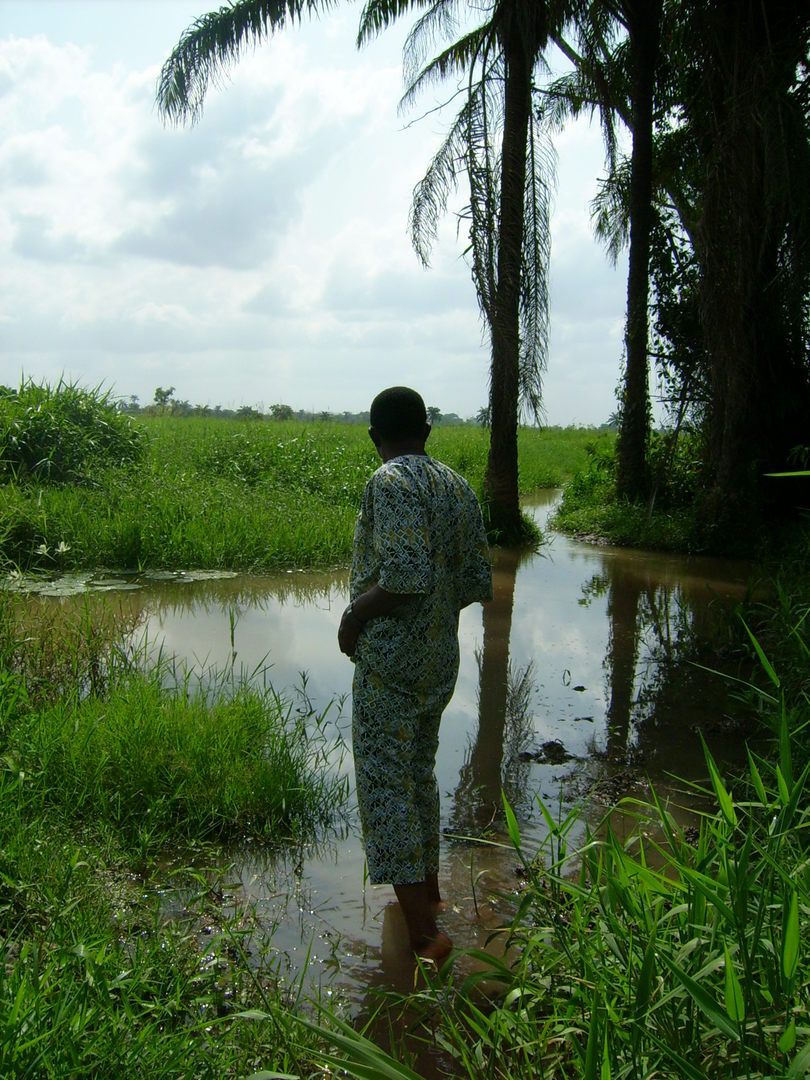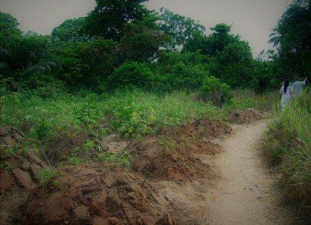 Ein echtes Abenteuer stellt die Zufahrt von der Hauptstadt des Bundeslandes Enugu nach Egudene dar. Das Bild entstand außerhalb der Regenzeit im November. Während der Regenzeit ist Egudene für Fahrzeuge praktisch nicht erreichbar.