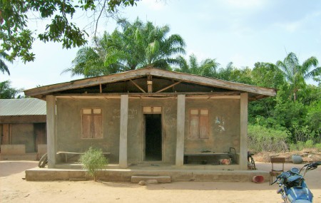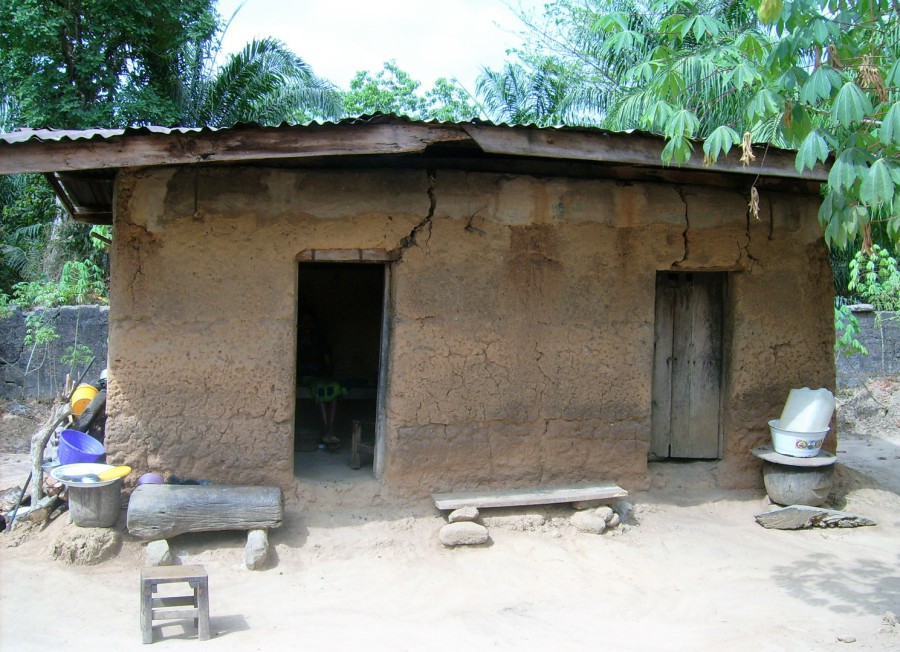 Dorfbewohner auf. Baustoffe von extern sind teuer und für die eher in bescheidenen Verhältnissen lebenden Menschen überwiegend unerschwinglich.