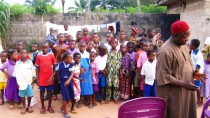 Am folgenden Tag kamen wir zum eigentlichen Ziel unserer Reise. Versehen mit Geschenken vor allem für die Kinder des Ortes, fuhren wir von Enugu zu dem ca. 2 Autostunden entfernten Dorf Egudene, dem Heimatort Pater Tobes.